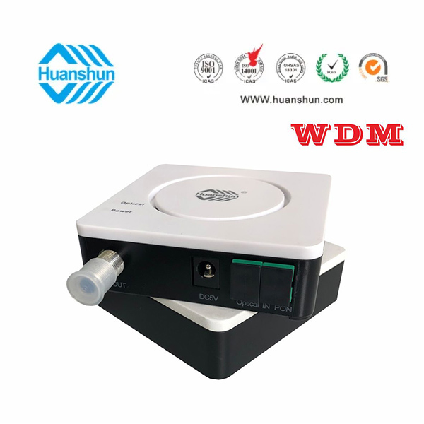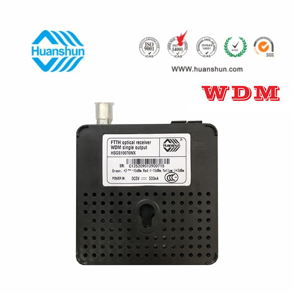 WDM型單輸出FTTH光接收機 | HSGS10076WX | CATV 1540~1565nm接收,-5~-15dBm/RF 76dBuv恒定輸出,PON:1270/1310/1490/1577nm;外置90~255V 5V 0.5A電源適配器 |