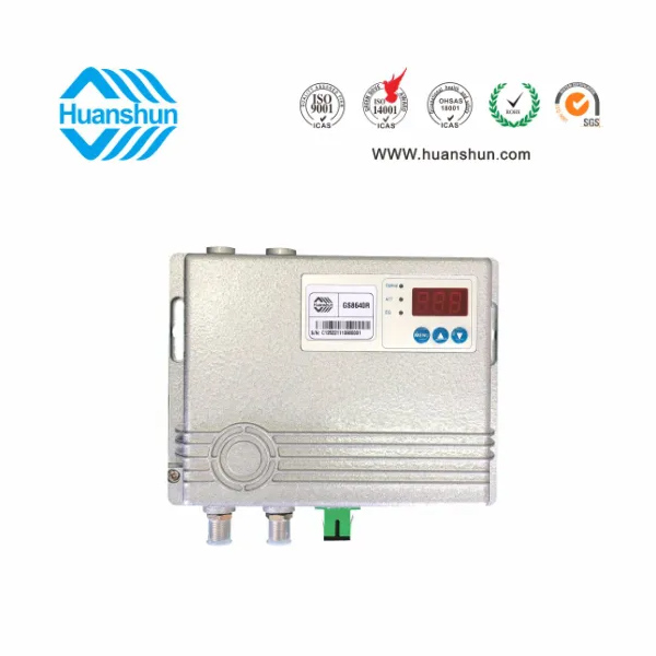 室內(nèi)型光接收機(jī) | GS8640R 1×104/2×100 | 47~860MHz,-7~+2dBm/RF 1×104或2×100dBuv,電調(diào)輸出電平和均衡量,外置 90~255V-12V 1.5A 電源適配器 |